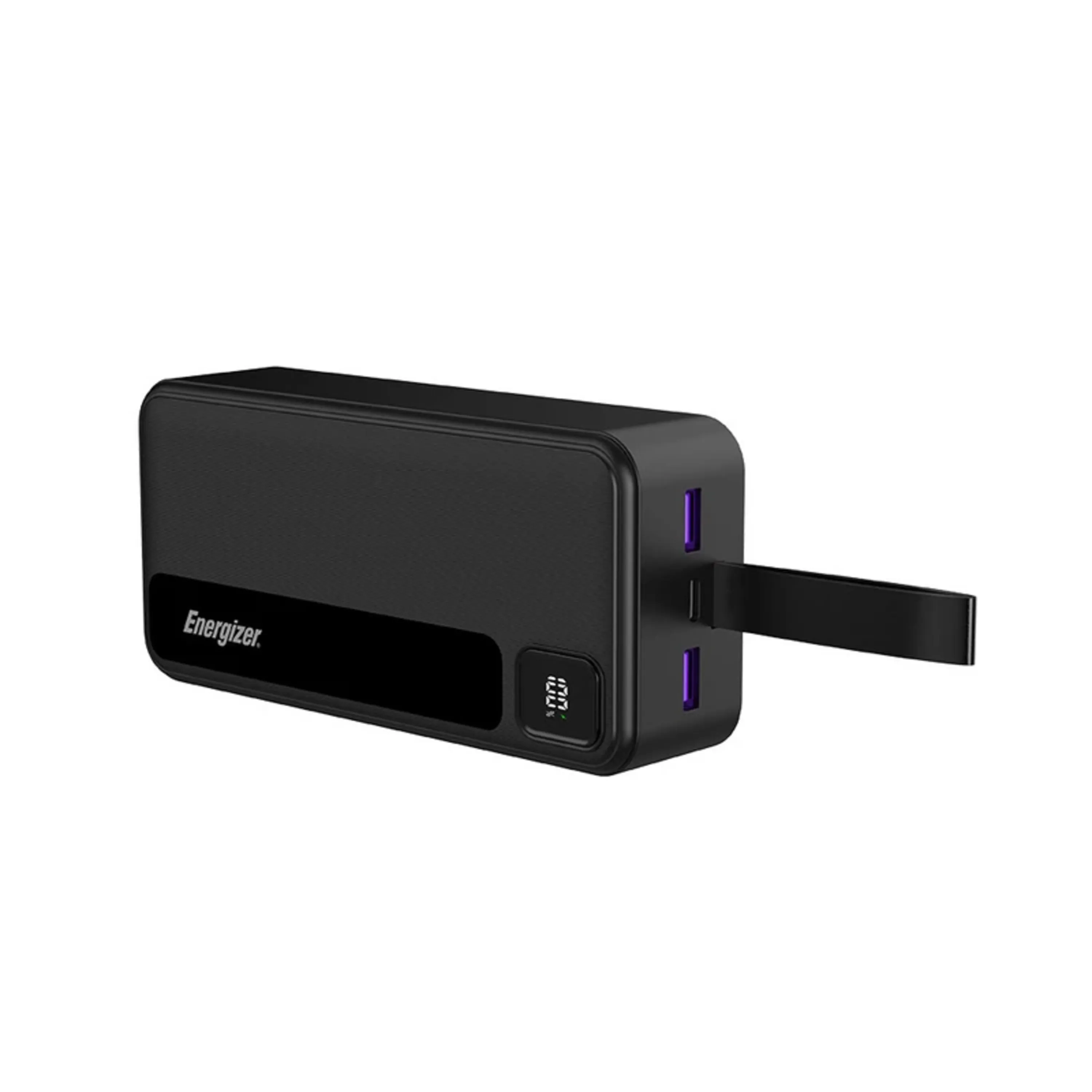 پاوربانک (PowerBank) مدل UE30035PQ از سری پاوربانکهای 30000 میلیآمپر شرکت انرجایزر و با بکار گیری فناوری فست شارژ به منظور شارژ رسانی سریع به تلفنهای هوشمند با سیستم عامل اندورید و iOS و تبلتها تولید شده است.پاوربانک UE30035PQ دارای 3 پورت میباشد که شامل یک پورت مشترک ورودی/خروجی تایپ سی، دو پورت خروجی USB-A است. پورت ورودی به همراه نرخ ولتاژ و جریان آن عبارتند از: پورت Type-C ورودی: 5V/2A – 9V/2A نرخ ولتاژ و جریان پورتهای خروجی این کالا نیز عبارتند از: پورت USB-A خروجی: 4.5V/5A – 5V/4.5A – 5V/3A – 9V/2A – 12V/1.5A پورت Type-C خروجی: 5V/2A – 9V/2.22A – 12V/1.5A این پاوربانک با حداکثر توان خروجی 22.5 وات دارای نمایشگر دیجیتال جهت نمایش میزان شارژ است. همچنین این محصول دارای وزن 585 گرم است که در کلاس وزنی پاوربانکهای نیمه سنگین قرار دارد. ابعاد این شارژر همراه نیز 147.5 × 69 × 42.4 میلیمتر است.این پاوربانک در رنگ مشکی با ظرفیت 30000 میلی آمپر دارای باتری لیتیوم پلیمری است. همچنین این کالا از رویه ضد خش و جنس بدنه آن نیز پلاستیک ABS است که مهمترین خاصیت آن ضد اشتعال بودن کالاست. از اقلام همراه این پاوربانک فست شارژ نیز میتوان به دفترچه راهنما و کابل شارژر اشاره کرد